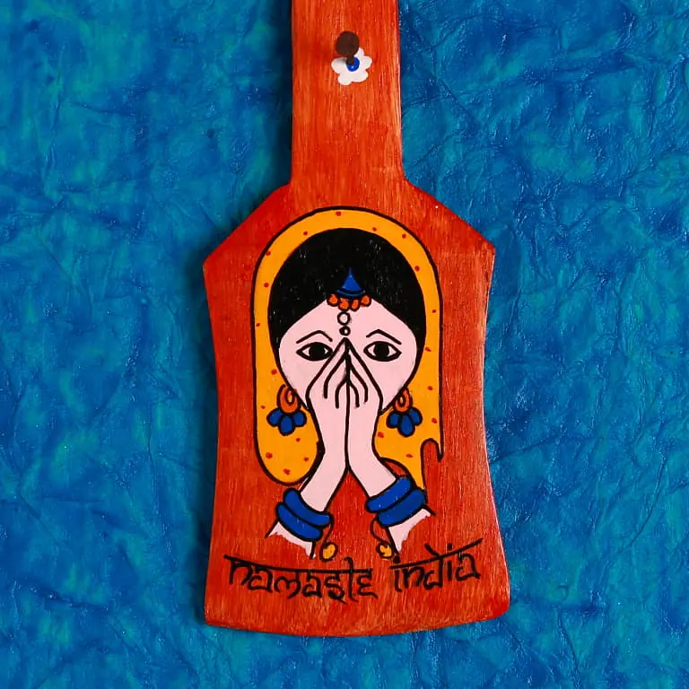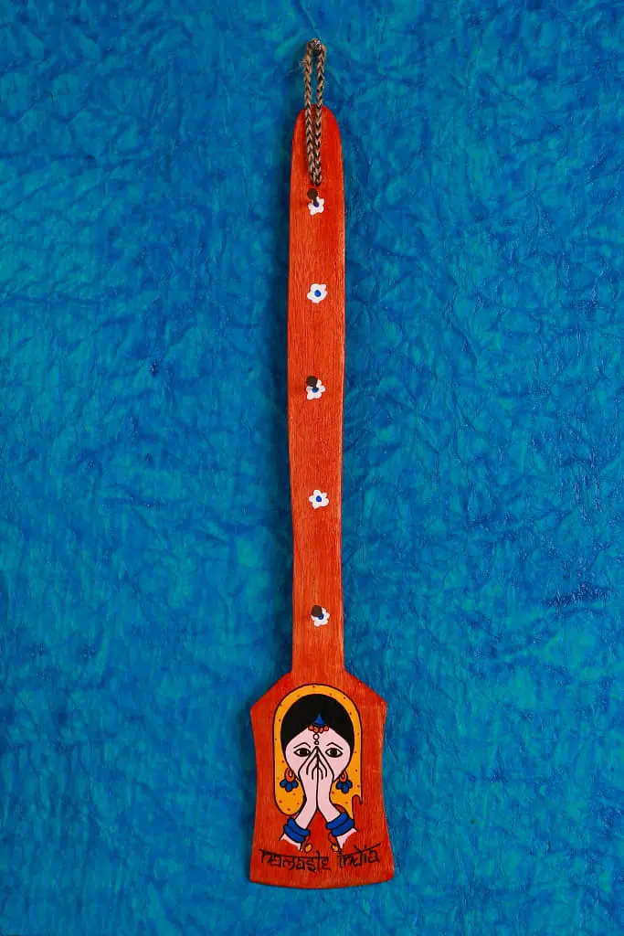 Description : This is a hand Painted wooden spatula coated with Protective coat and steel hooks to hang multiple keys. Designs acts as a souvenir item too.