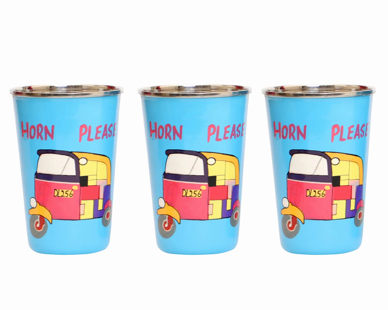 Description :Hand painted stainless steel tumbler Set of 3 Large glasses ,Each chai glass large 400 ml , drinking glass