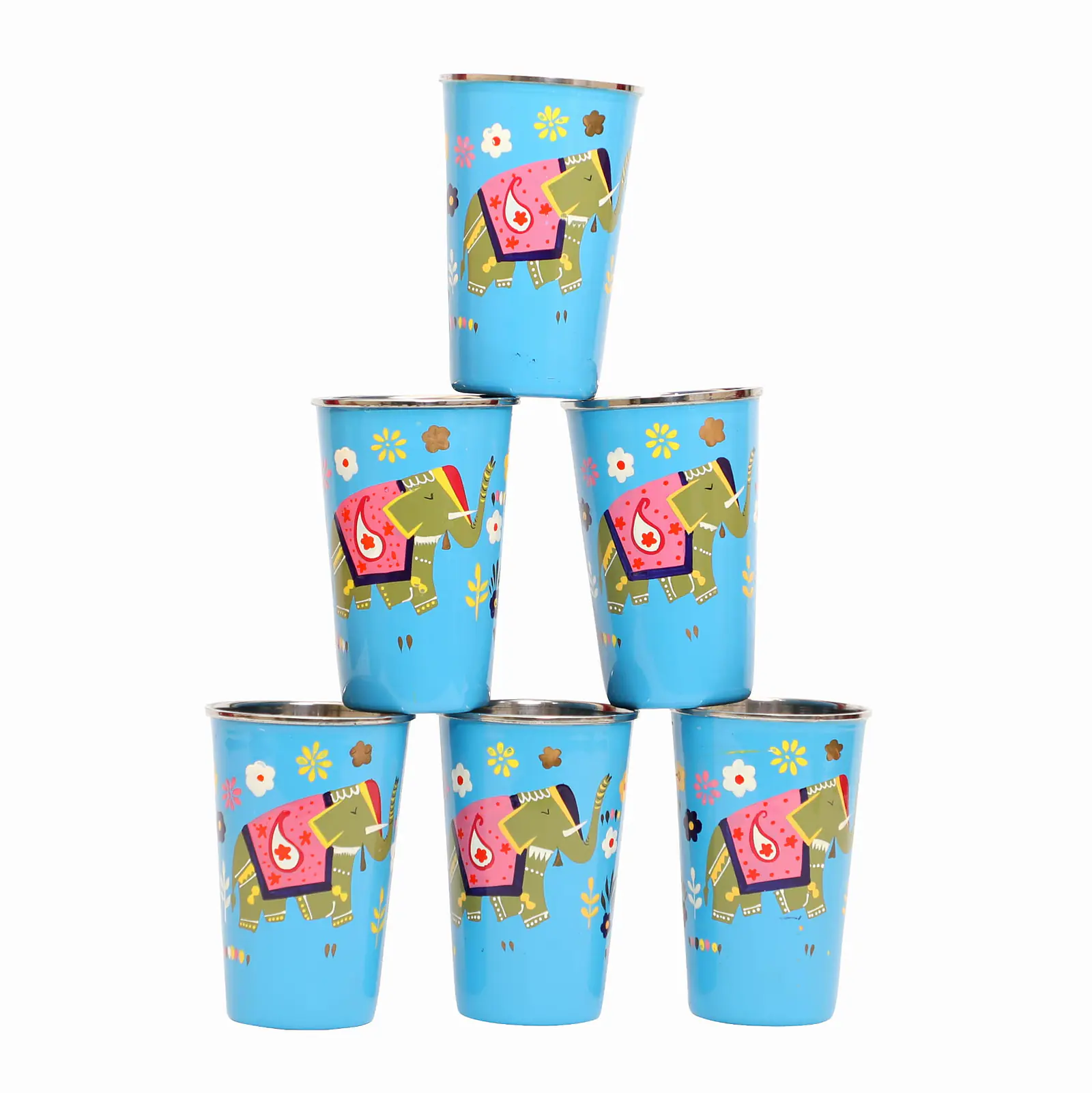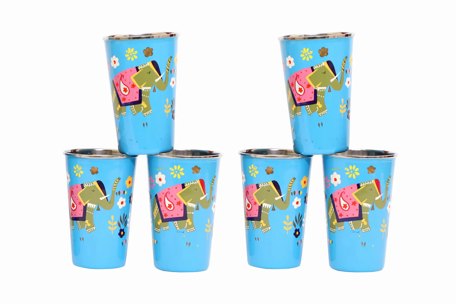 Description :Hand painted stainless steel tumbler Set of 6 Large glasses , Each chai glass large 400 ml , drinking glass