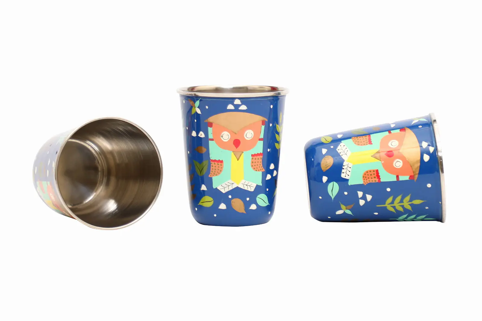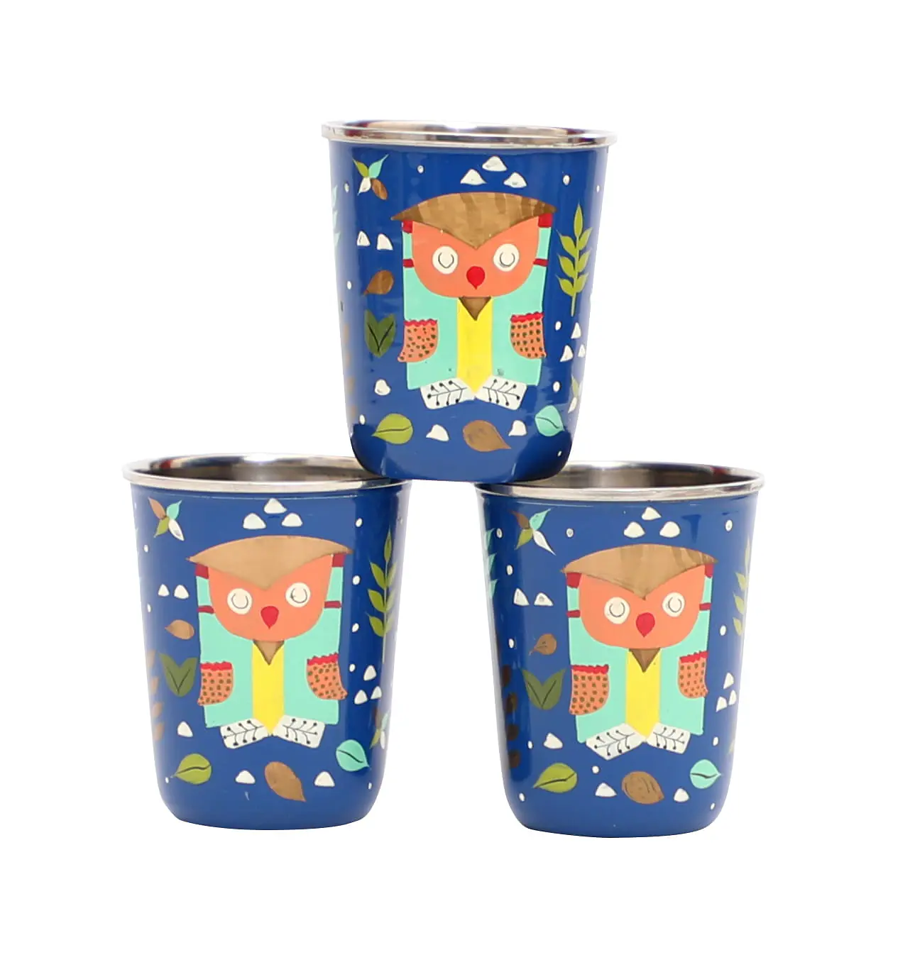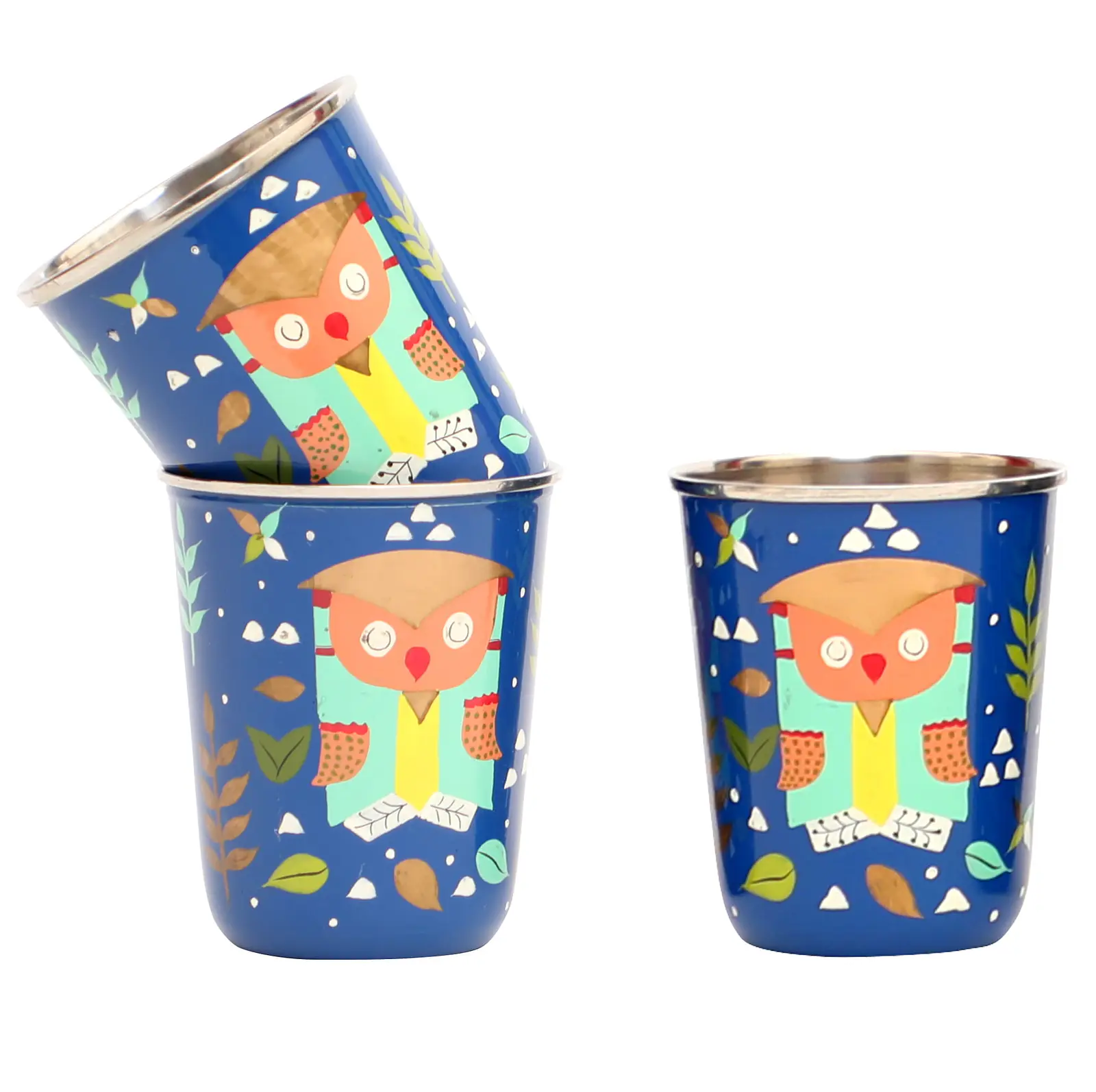 Steel Tumbler Small-Owl Tie Blue ( set of 3 )