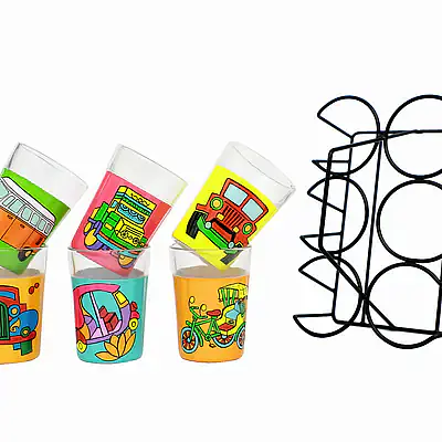 Description : Product is Elegantly Hand designed Traditional Cutting Chai Glasses (Set of 6) with Traditional Glass Holder / Stand.