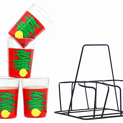 Theme: Nimbu mirchi in Indian culture is believed to ward of evil spirits. These glasses are inspired from this age old belief.