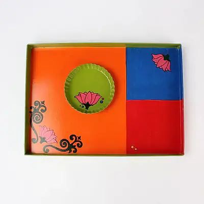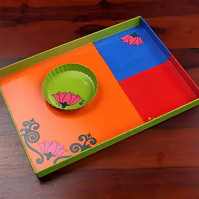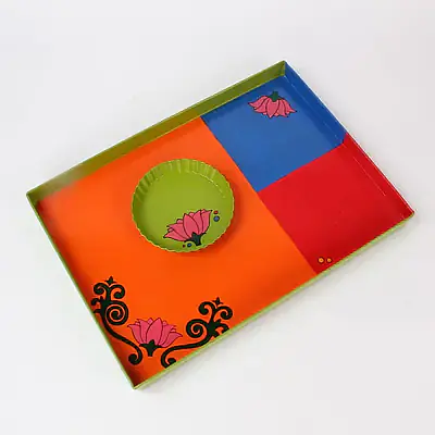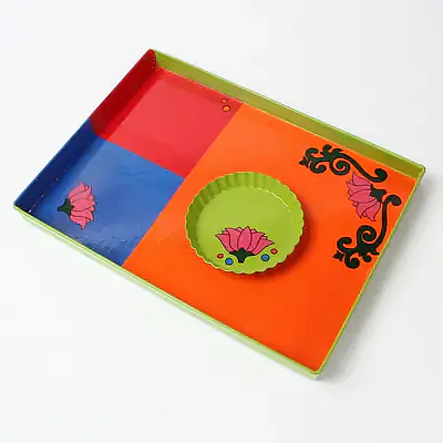 Description : Aluminium tray, especially designed and handpainted to give a designer touch while serving the guest. Must to have types.