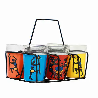 Tapri Glasses - Country Wood Stand With 4 Glasses