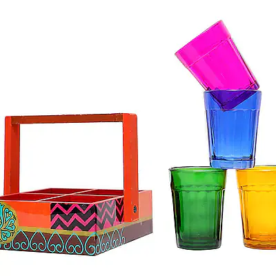 Cutting Chai Glasses Super Six With Raw Wooden Stand