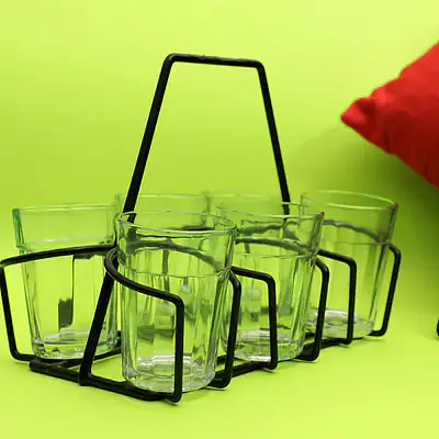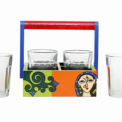 Cutting Chai Glasses Super Six With Raw Wooden Stand